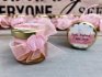 Marturia se poate personaliza cu o eticheta rotunda aplicata pe capac, cu numele fetitei si data botezului.