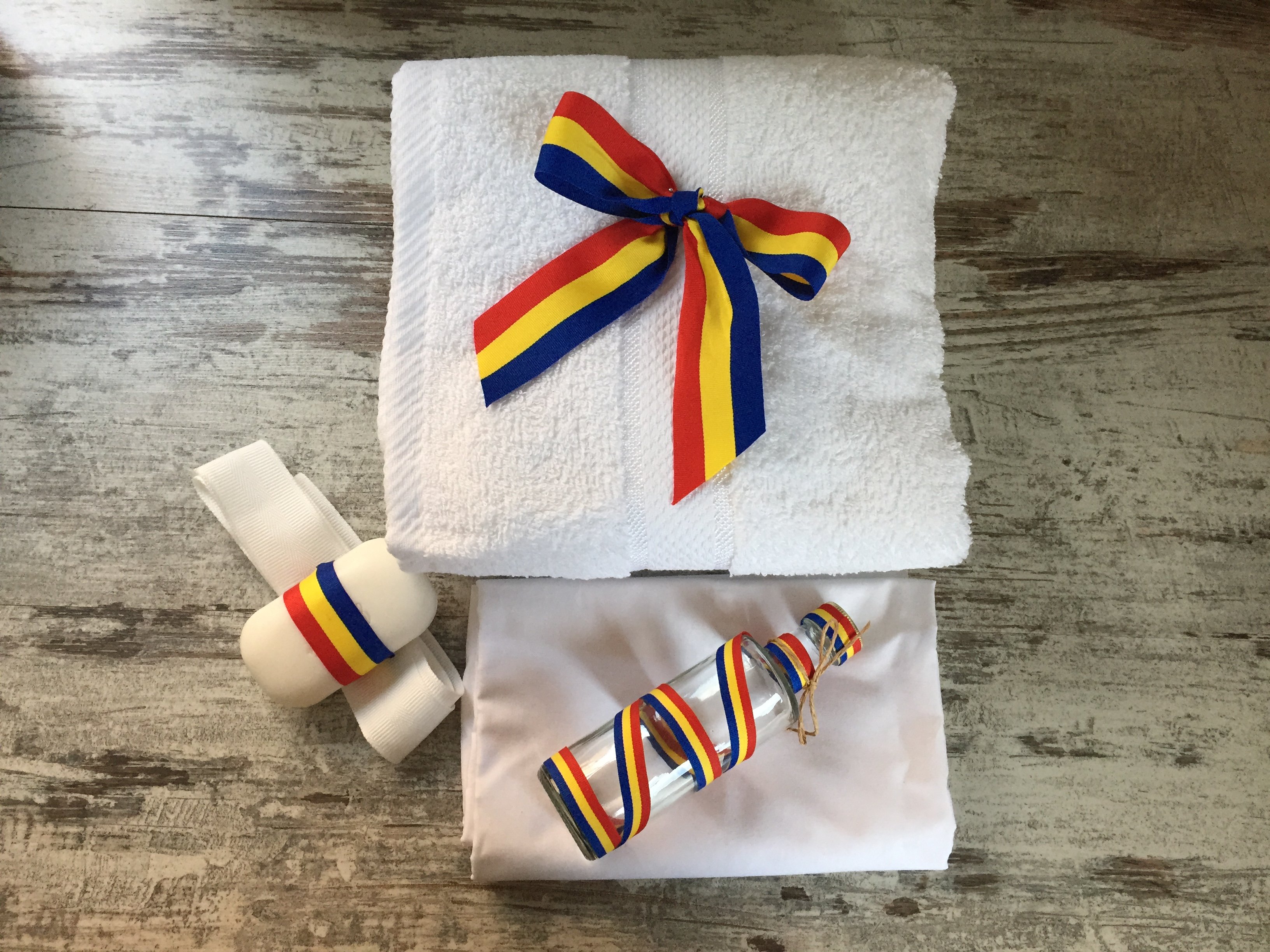 Contine: prosop pentru preot (70x140cm) , sapun preot (9,5cm), fasa (130cm), panza de mir cu broderie (100x130cm), sticluta pentru mir.