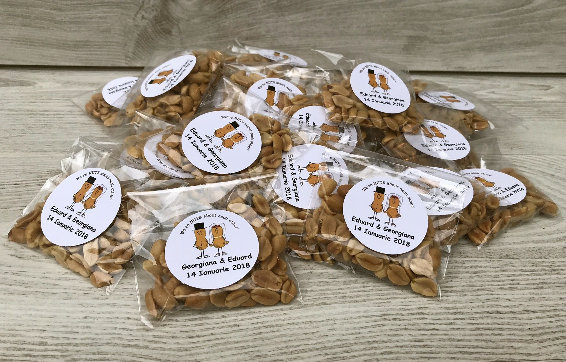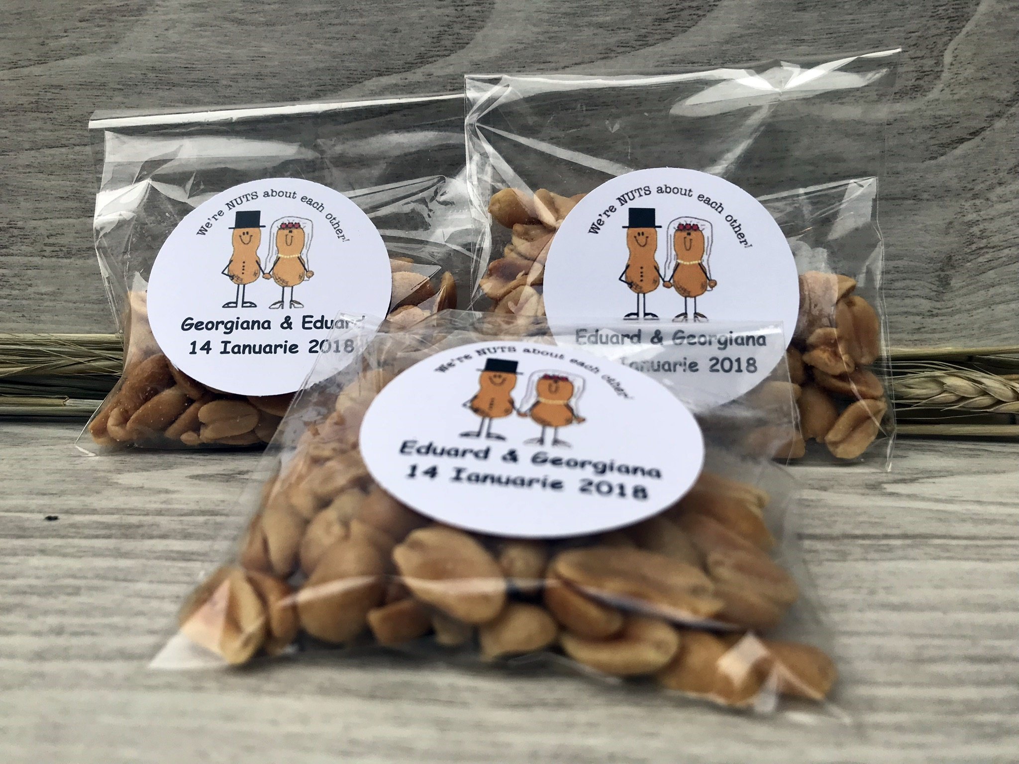 We are NUTS about each other in partea de sus, iar in partea de jos numele mirilor si data evenimentului.