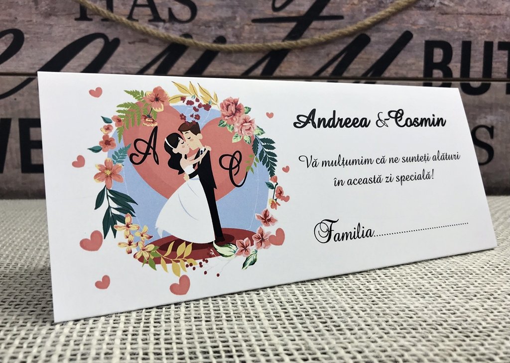 Plicul de bani nu se poate personaliza cu numele invitatului, doar in formatului familia..... sau doar .....