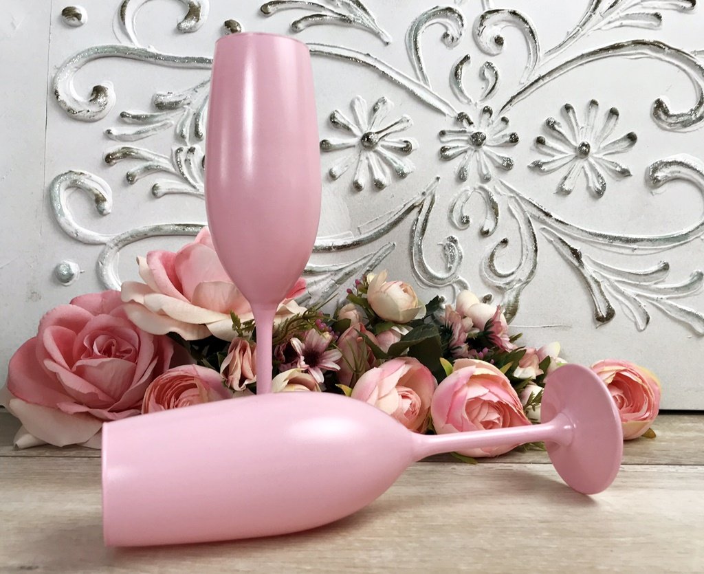 Paharele sunt vopsite manual intr-o nuanta mata de roz. Sunt lacuite pentru ultrarezistenta.