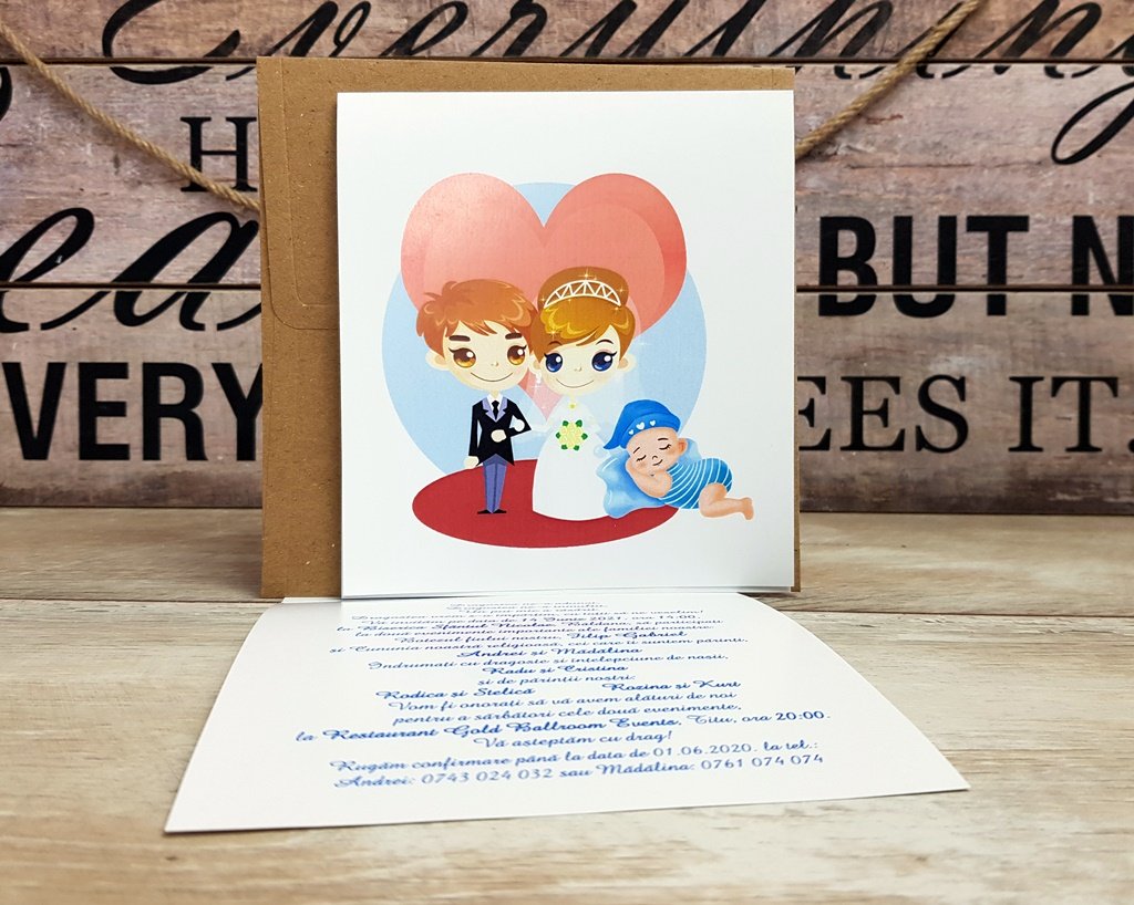 Dimensiune invitatie : 13.5 cm x 13.5 cm (pliata)