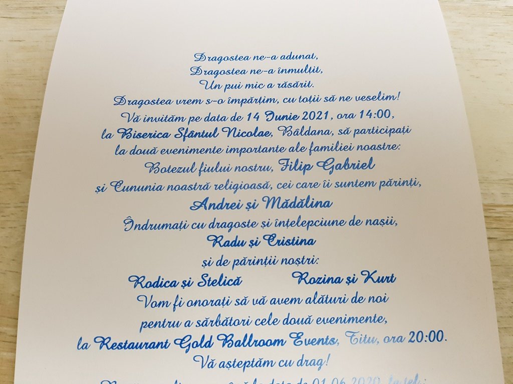 Va rugam sa cititi cu ATENTIE (cuvant cu cuvant, litera cu litera) macheta grafica cu textul si datele dvs. primita pe Email sau WhatsApp.