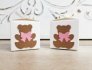 Marturii botez - cutiute de carton cu Ursulet cu fundita roz. Cutia se inchide cu un fluturas.