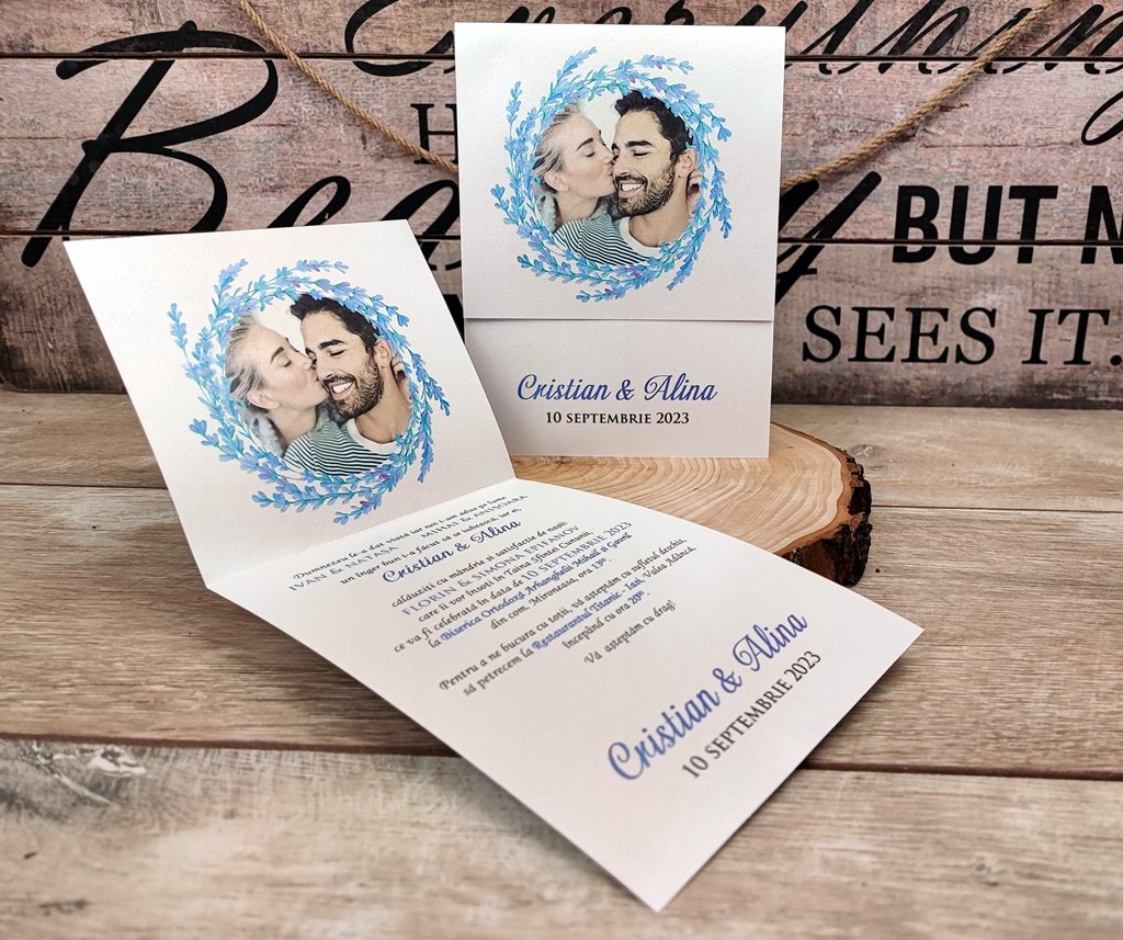 Nota: Pretul invitatiei afisat include invitatia, poza si plicul, dar nu include personalizarea cu text si asamblarea invitatiei.