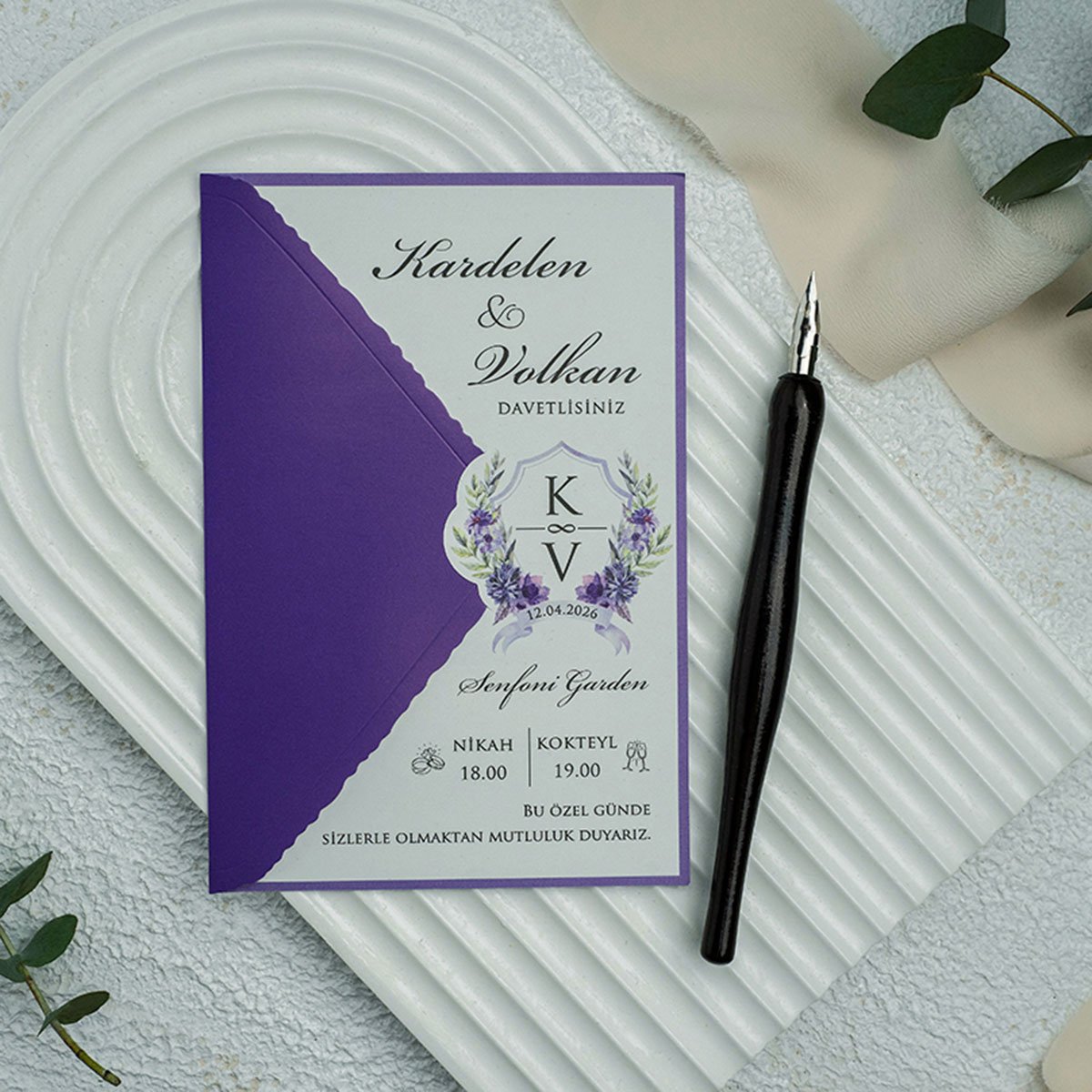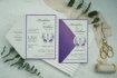 Invitatie de nunta eleganta florala care se pliaza pe mov
